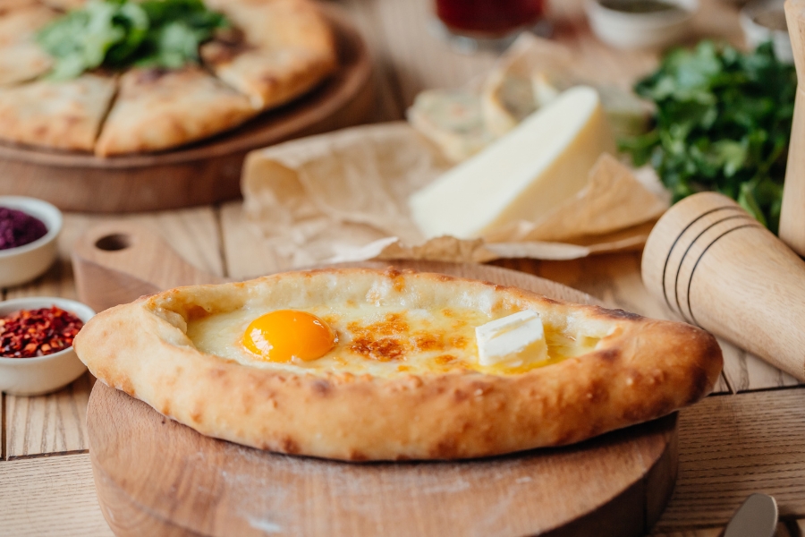 - хачапури – дрожжевое тесто с сыром, подаваемое горячим,